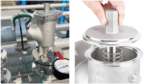 そして、通常の末端フート弁のメンテナンスでは、吊り上げや水槽内の水を抜くなど多大な作業が発生しますが、スモレンスキ フートバルブは地上に設置されているため、簡単に取り外せて、しかも工具なしでのメンテナンスを可能にしました。