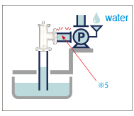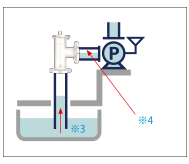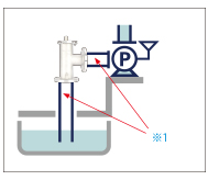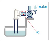 Install the foot valve. The piping, between the water level and the pump, is filled entirely with air. ※1