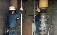 Since the ceiling of the pump room is low, it’s hard to raise the valve and put it back in place.